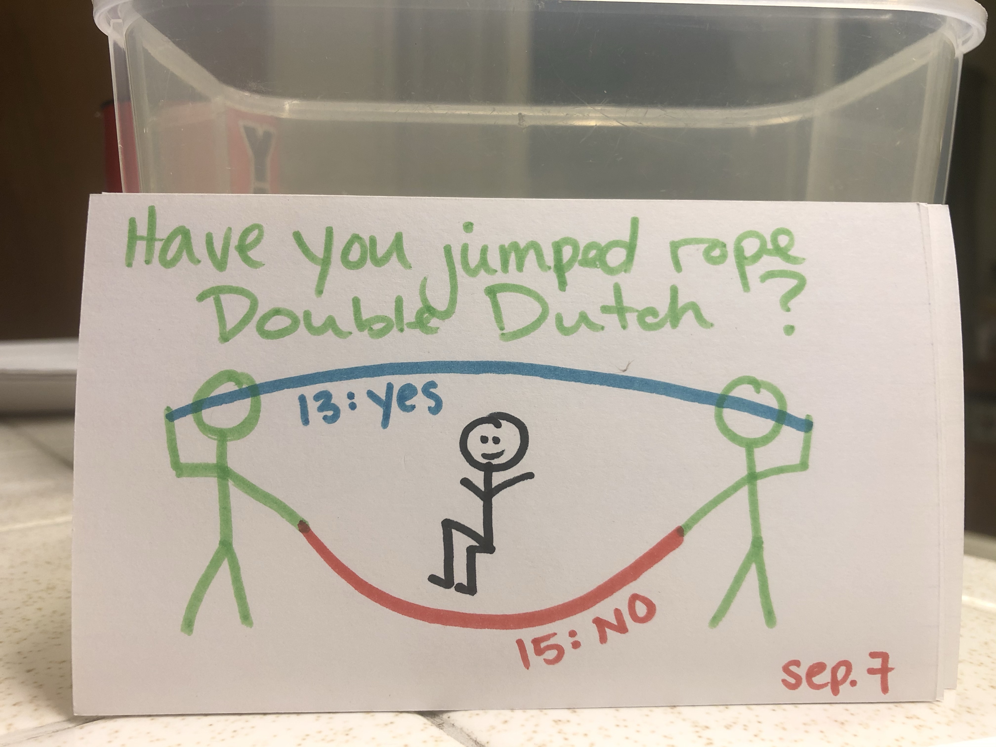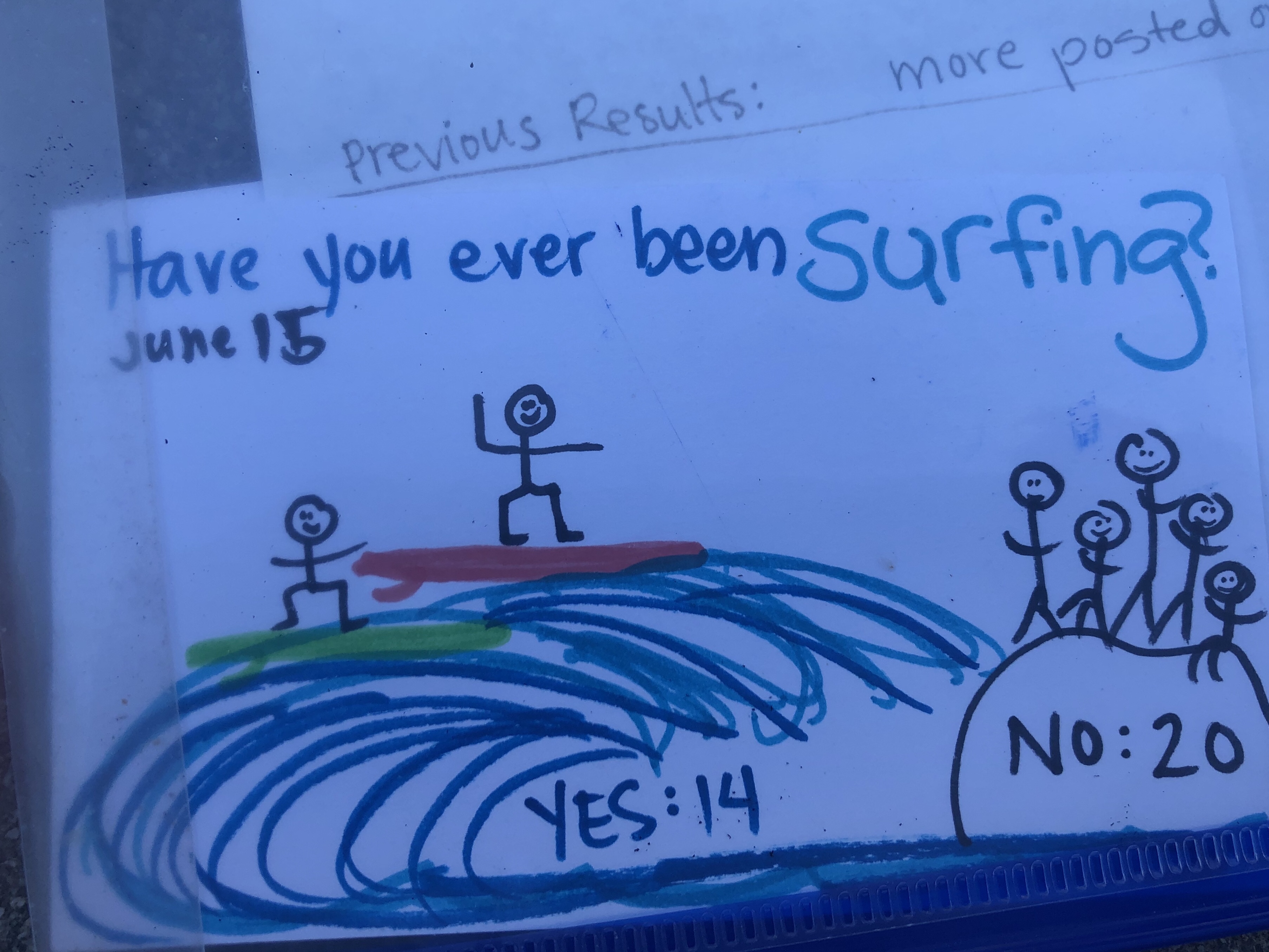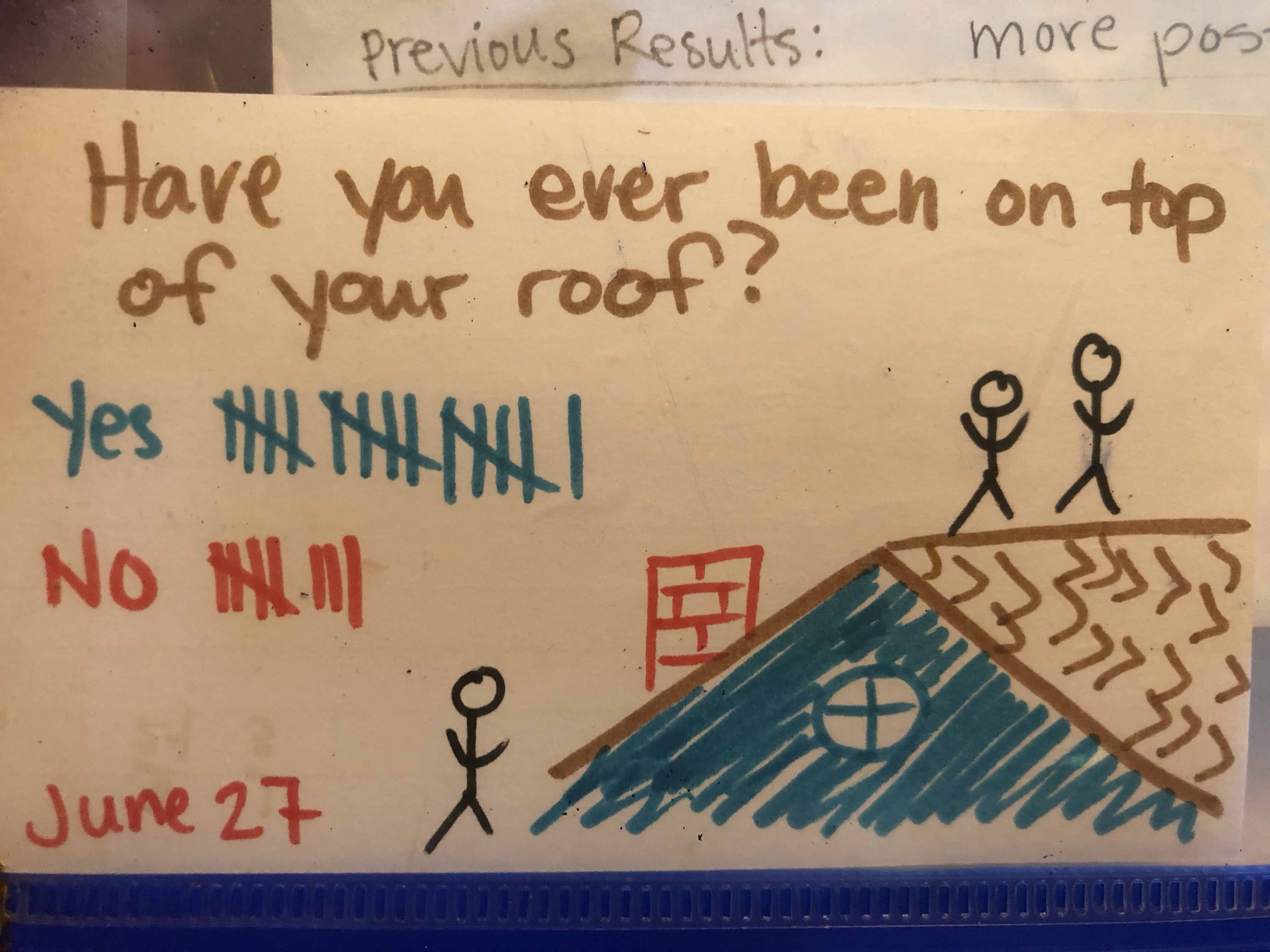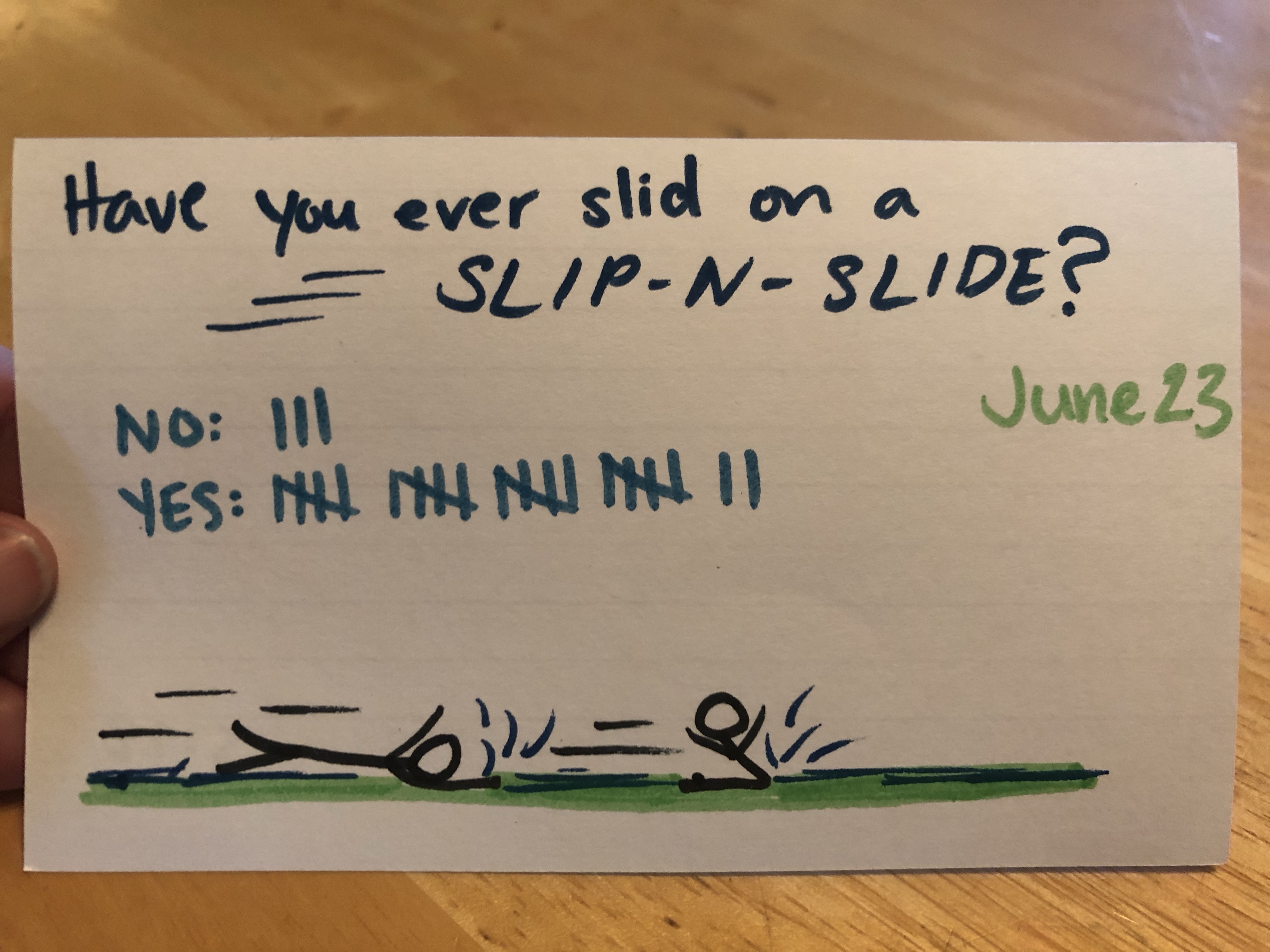 Our active little boys play out front of the house often, and my introvert interactions with neighbors usually consists of smiles and hand waves to people out walking. But all of the sudden, people were stopping to chat, some that we were more familiar with, but many people we have never talked to before. They would tell me how they enjoyed the survey and interested in what the current question might be. We would talk about random silly things like horseback riding or skydiving, things that never would have entered the conversation in another context. (Some would even walk away chatting to each other about a time in their life that they hadn’t discussed before.)