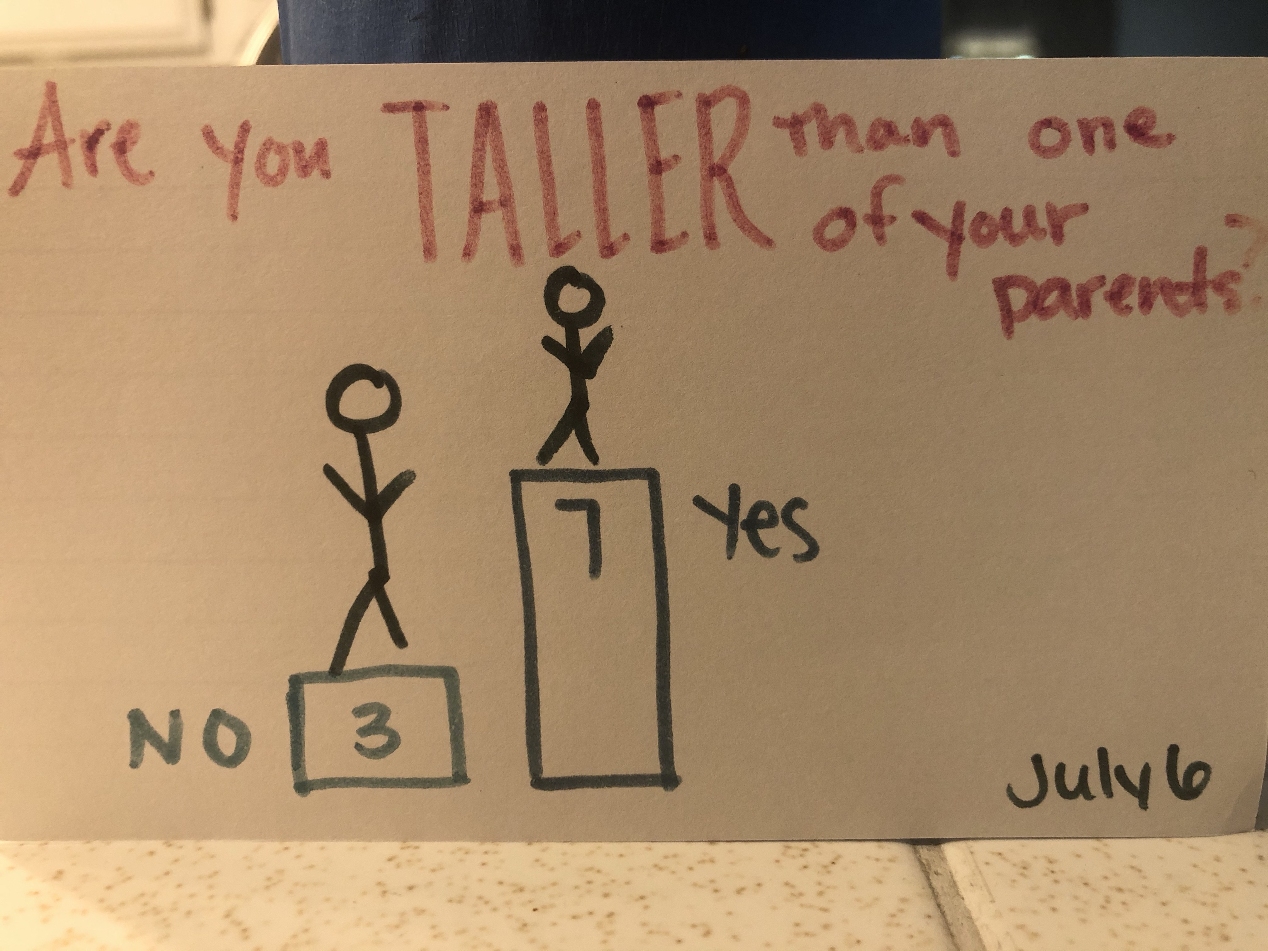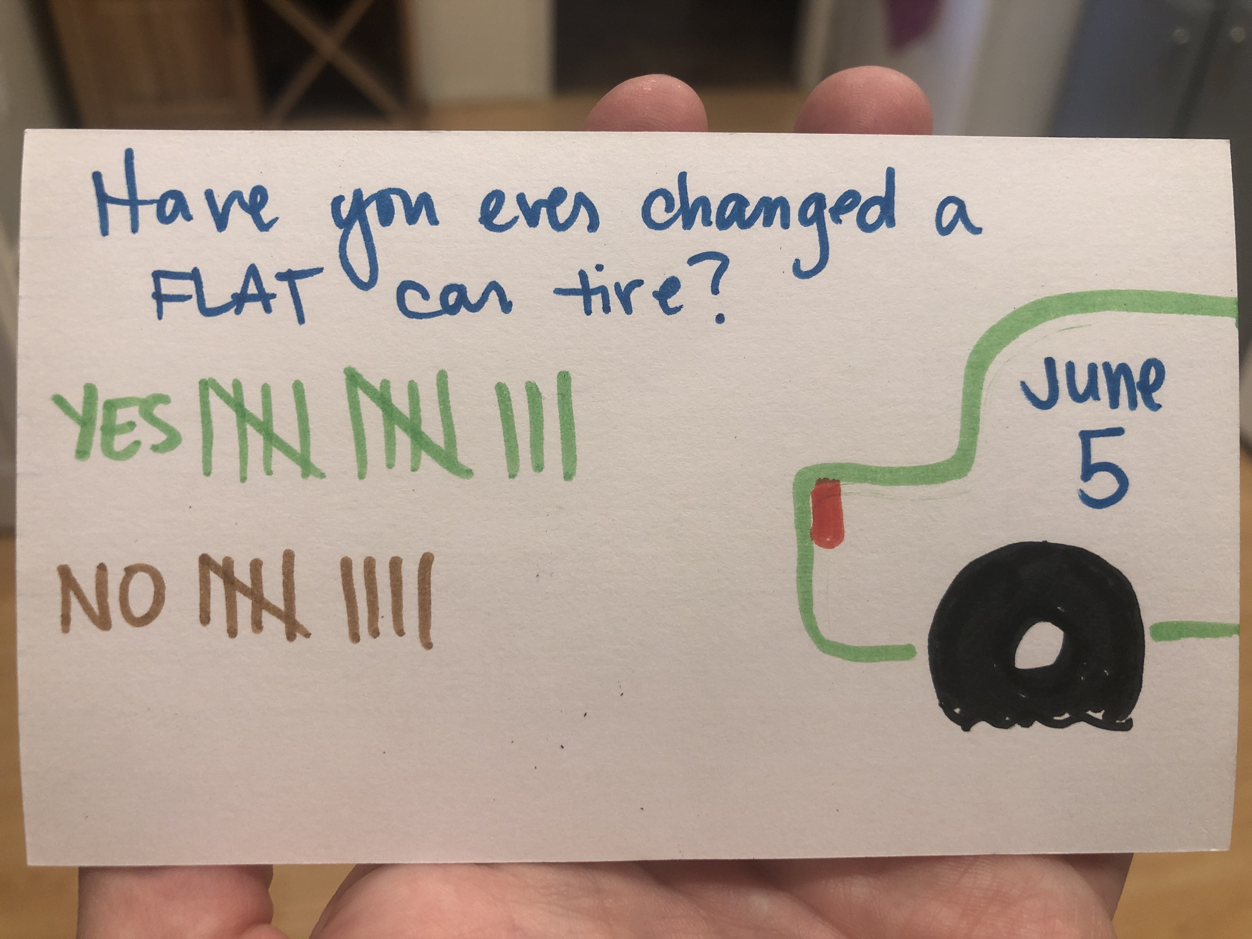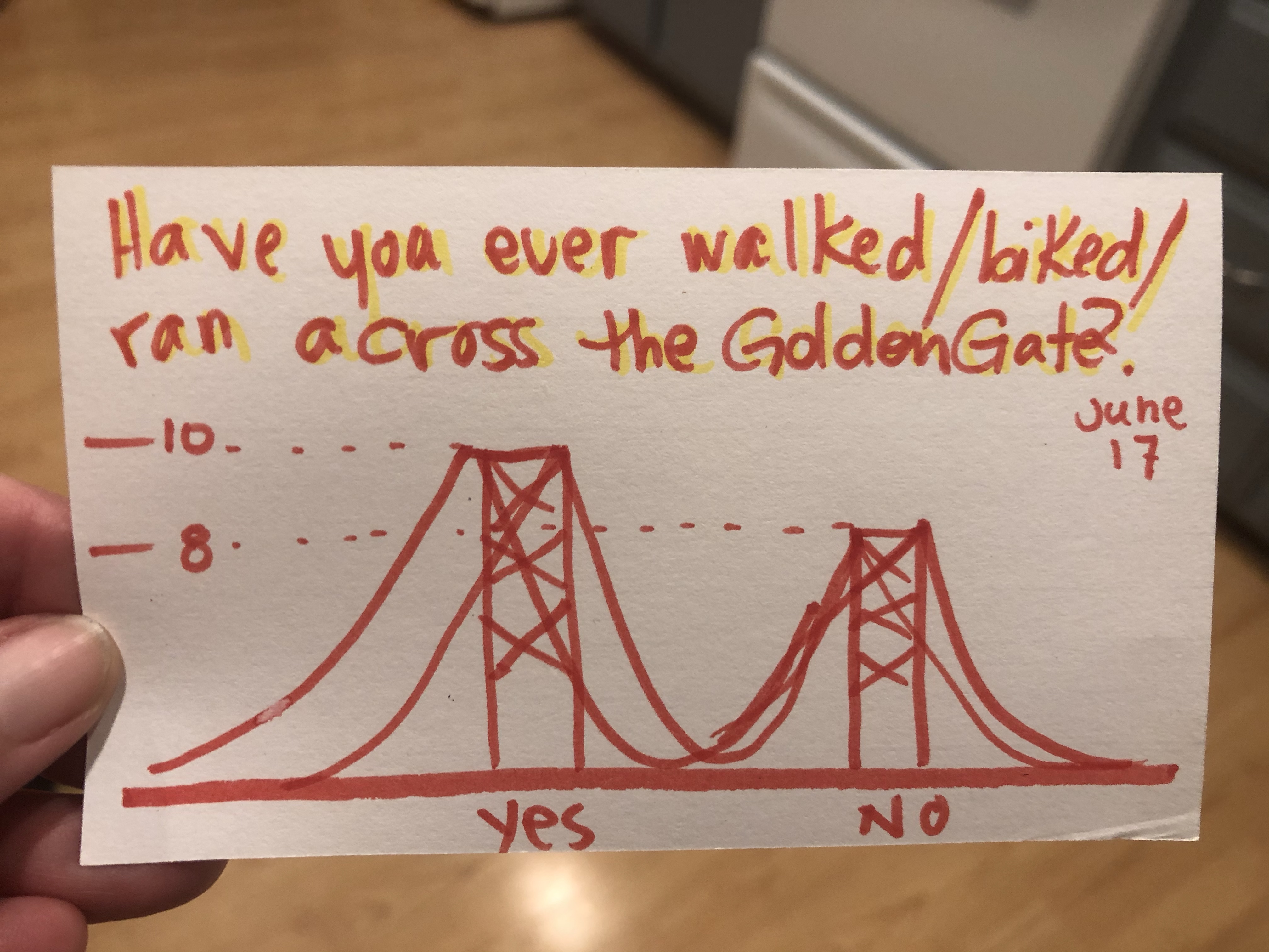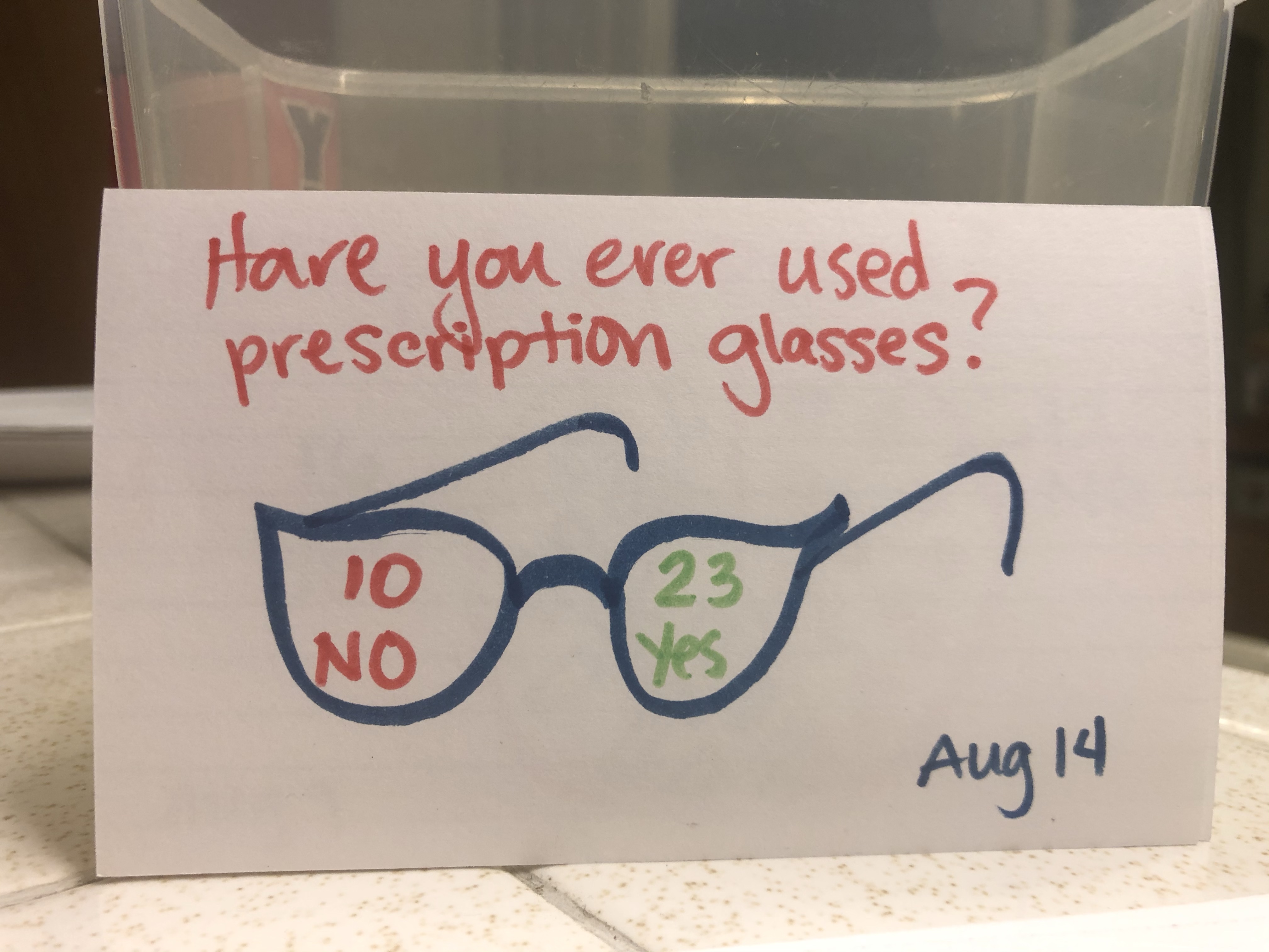 Our active little boys play out front of the house often, and my introvert interactions with neighbors usually consists of smiles and hand waves to people out walking. But all of the sudden, people were stopping to chat, some that we were more familiar with, but many people we have never talked to before. They would tell me how they enjoyed the survey and interested in what the current question might be. We would talk about random silly things like horseback riding or skydiving, things that never would have entered the conversation in another context. (Some would even walk away chatting to each other about a time in their life that they hadn’t discussed before.)