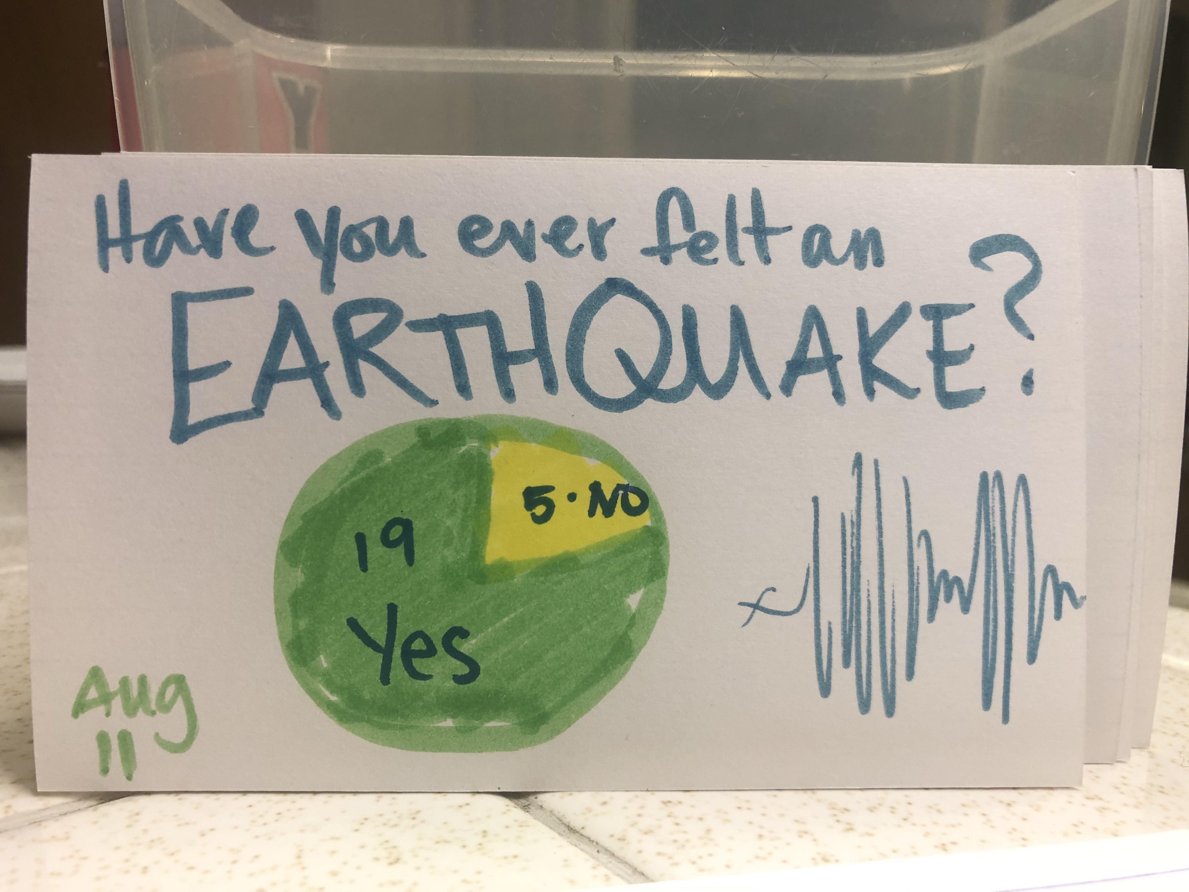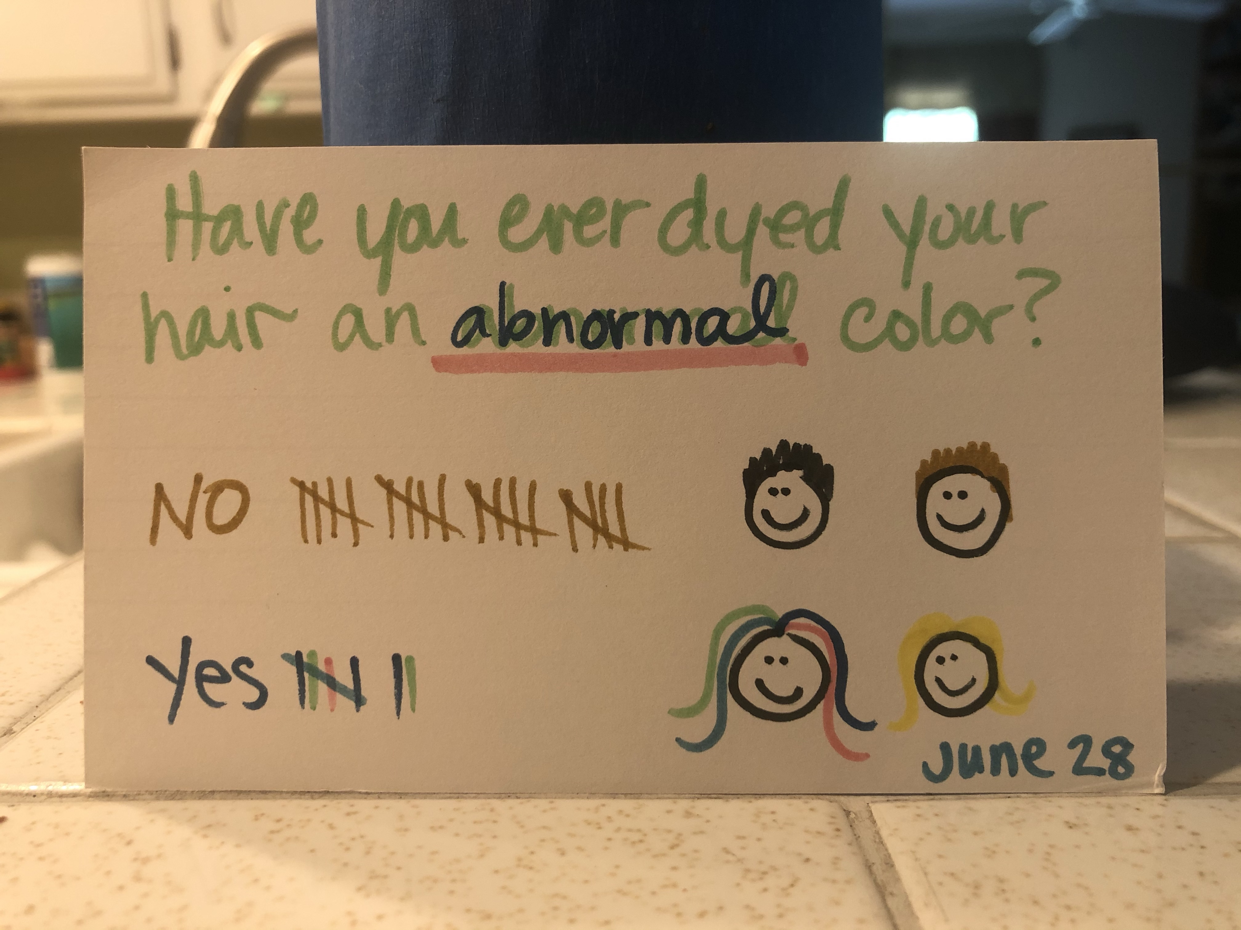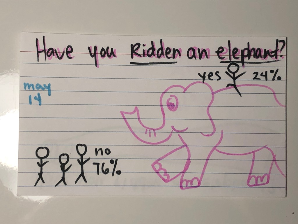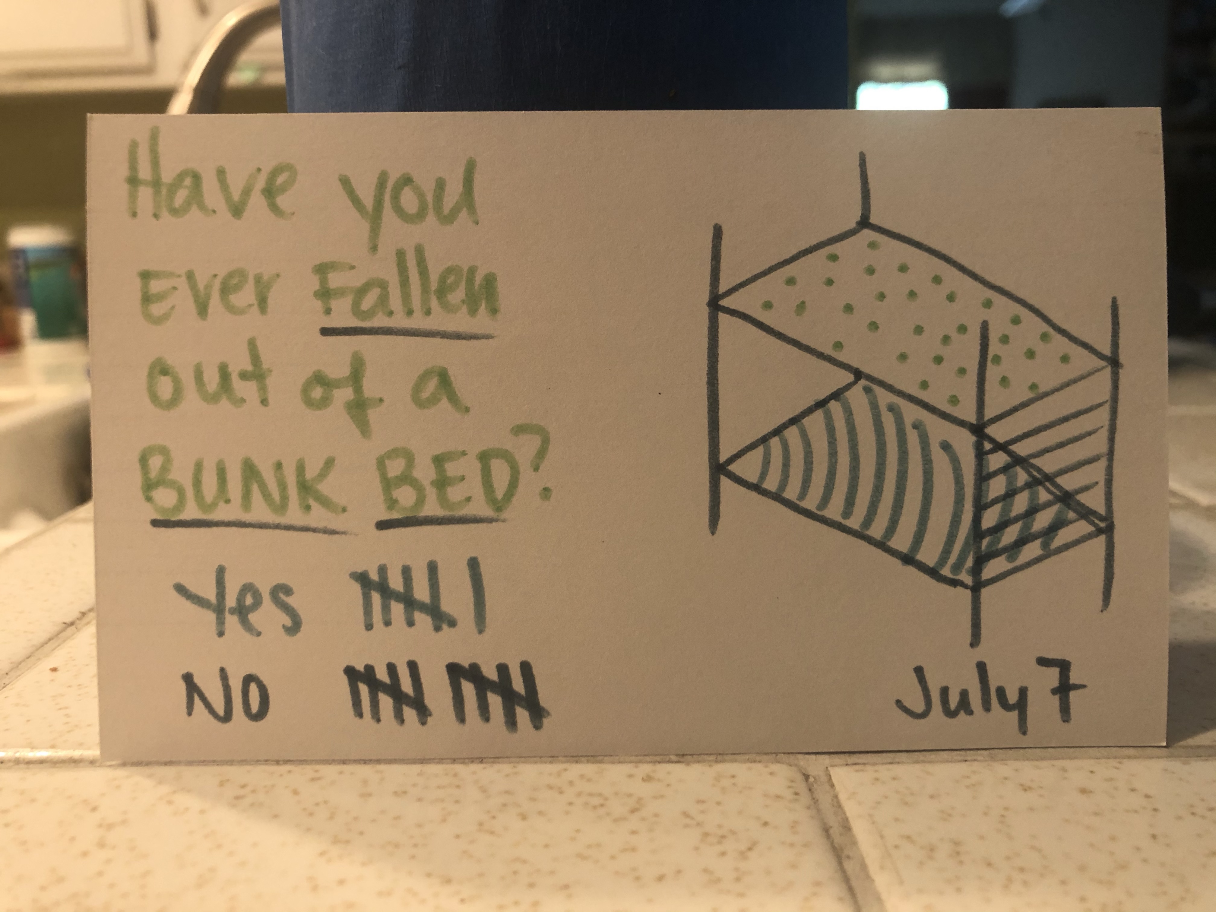 Our active little boys play out front of the house often, and my introvert interactions with neighbors usually consists of smiles and hand waves to people out walking. But all of the sudden, people were stopping to chat, some that we were more familiar with, but many people we have never talked to before. They would tell me how they enjoyed the survey and interested in what the current question might be. We would talk about random silly things like horseback riding or skydiving, things that never would have entered the conversation in another context. (Some would even walk away chatting to each other about a time in their life that they hadn’t discussed before.)